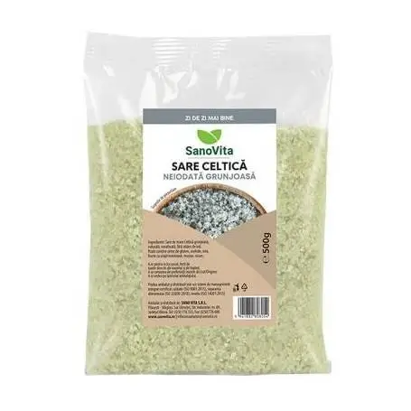 Sarea celtică grunjoasă neiodată de la Sanovita este o sare naturală, nerafinată, recunoscută pentru conținutul său bogat în minerale esențiale și pentru faptul că nu conține aditivi sau iod adăugat. Este recoltată tradițional, păstrând astfel proprietățile sale benefice.